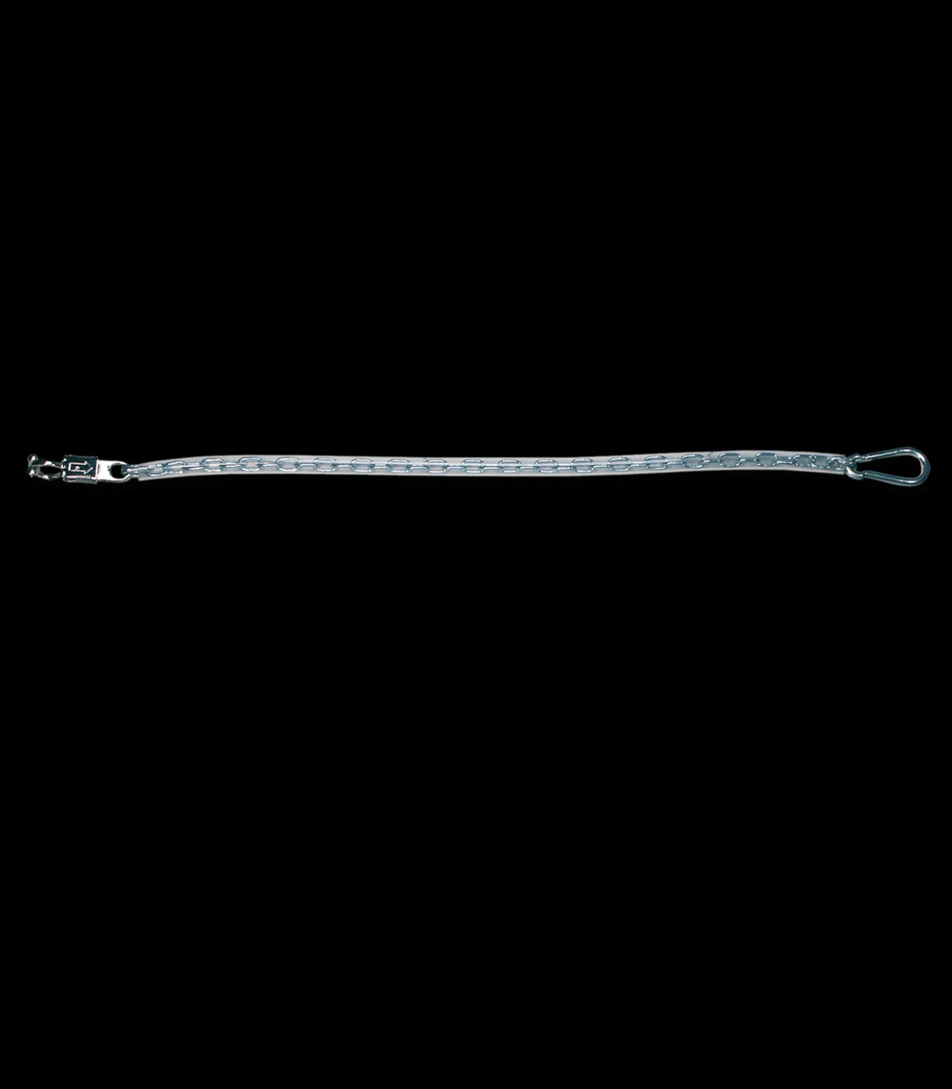 Transparente, ummantelte Kette mit Panikhaken und Karabiner.
