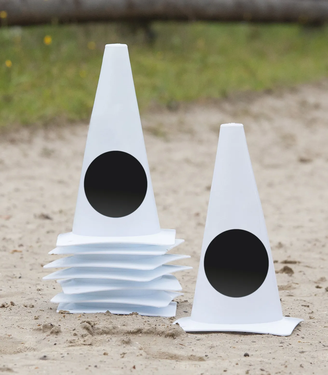 Extra robuste, freistehende Bahnpylone aus Plastik. Auch geeignet für Reiterspiele oder als Sprungunterbau. Mobil und leichtgewichtig zur Absteckung eines Vierecks (4 St.). Stapelbar für den problemlosen Transport und zur einfachen Lagerung.