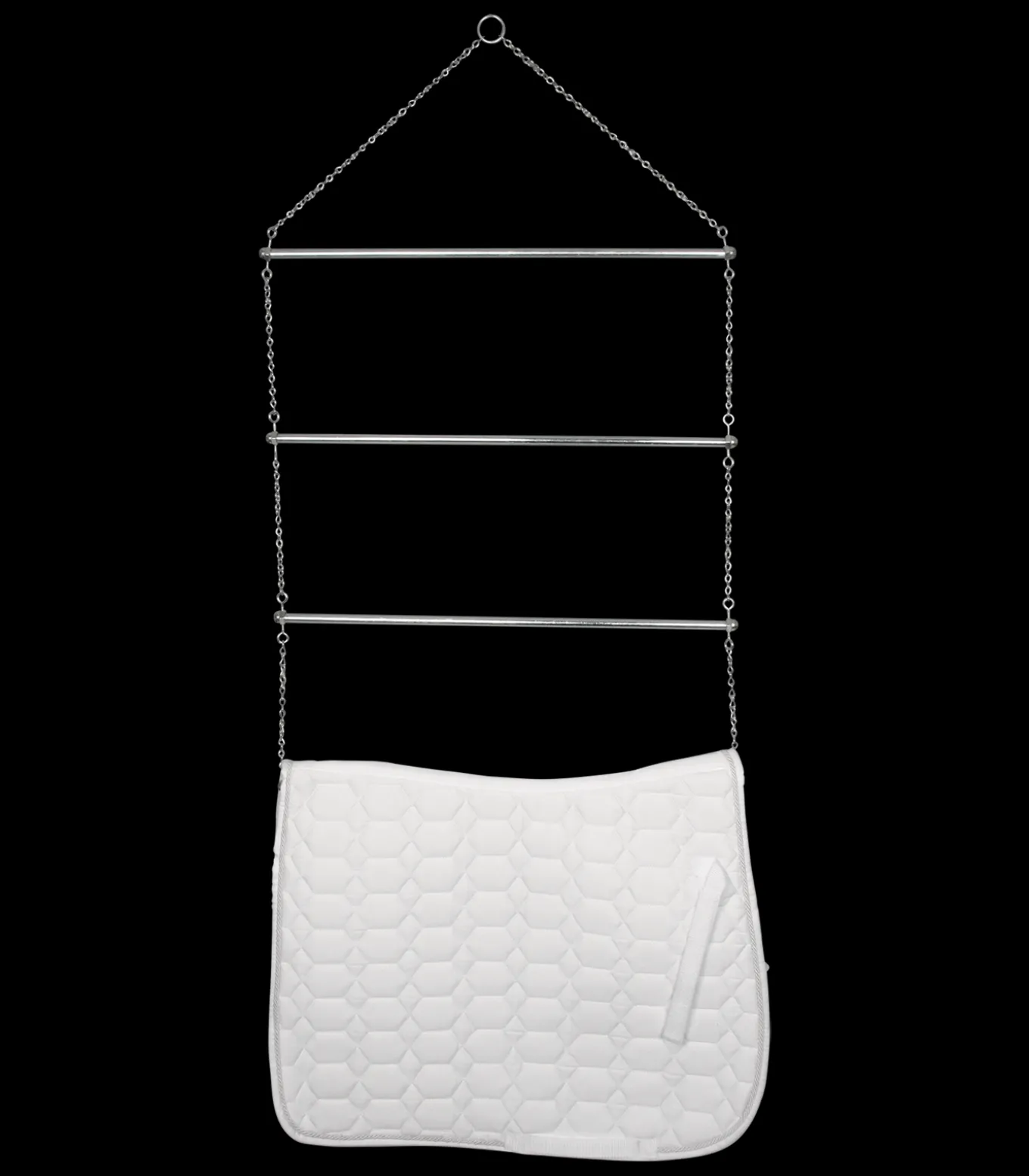 Zur ordentlichen und platzsparenden Aufbewahrung von Decken und Schabracken. Vier Stufen und ein praktischer Ring zum Aufhängen.