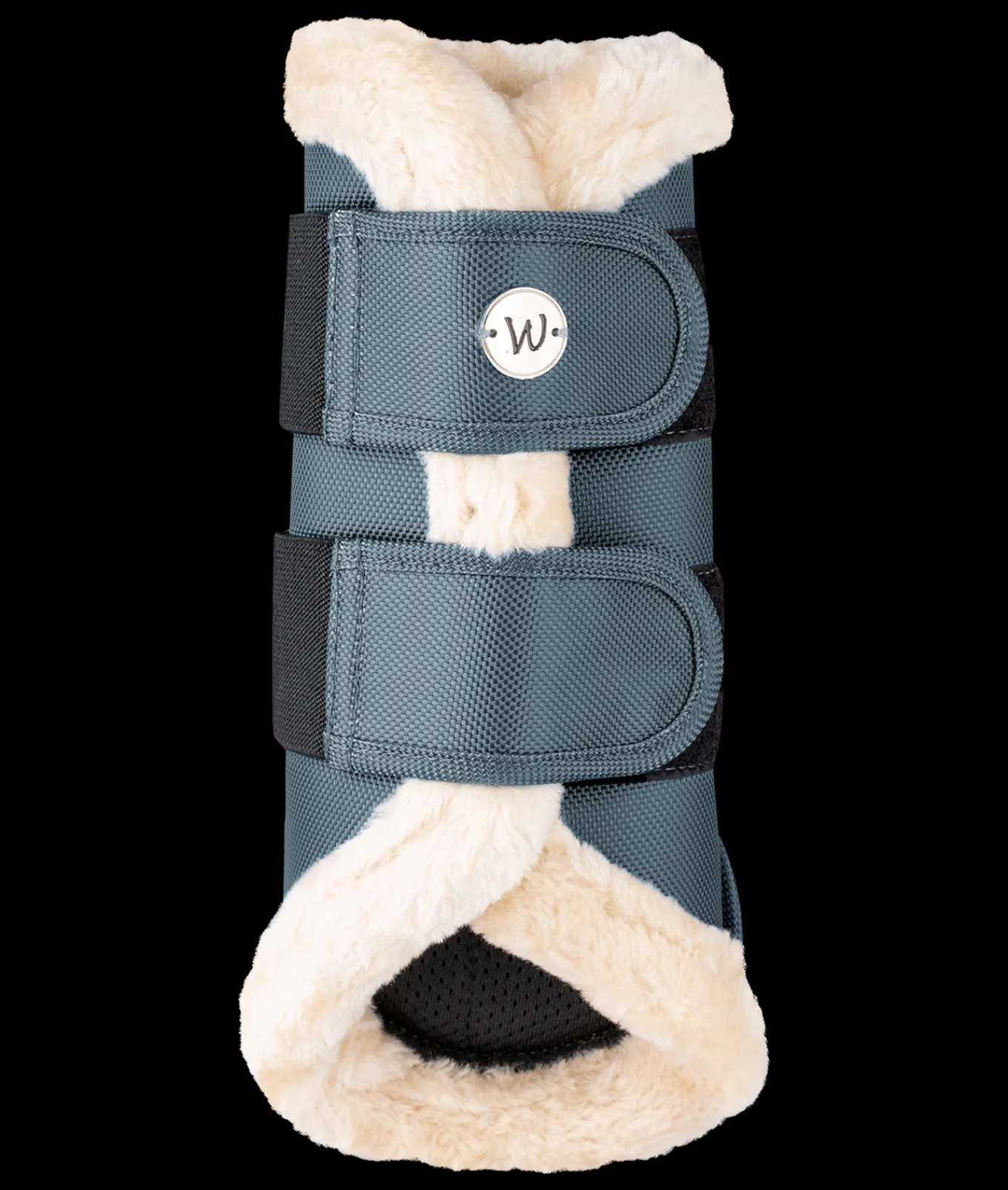 Dressurgamasche, innen mit atmungsaktivem Mesh. Das Außenmaterial ist aus einem robusten 1680 denier Material und bietet einen guten Schlagschutz. Der weiche Kunstfellrand sorgt für einen angenehmen Tragekomfort. Mit kleinem silberfarbendem Metall-Logo. Passend zu unser Pegasus Kollektion.