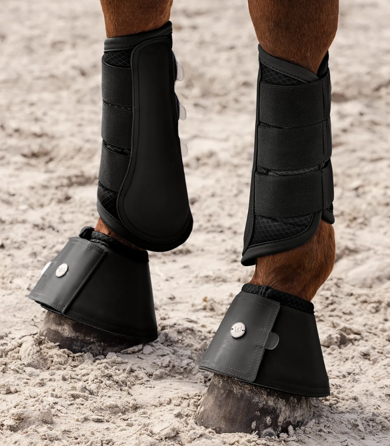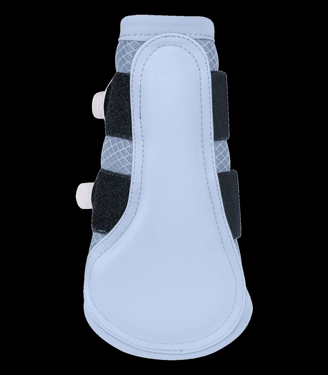 Dressurgamasche für Vorder- und Hinterbeine. Das Außen- und Innenmaterial ist aus einem atmungsaktivem Mesh, um einen Hitzestau vorzubeugen. Der Schlagschutz ist aus einem robusten PU-Material. Mit kleinem silbernen Metall-Logo. Passend zu unser Rimini Kollektion. Paar