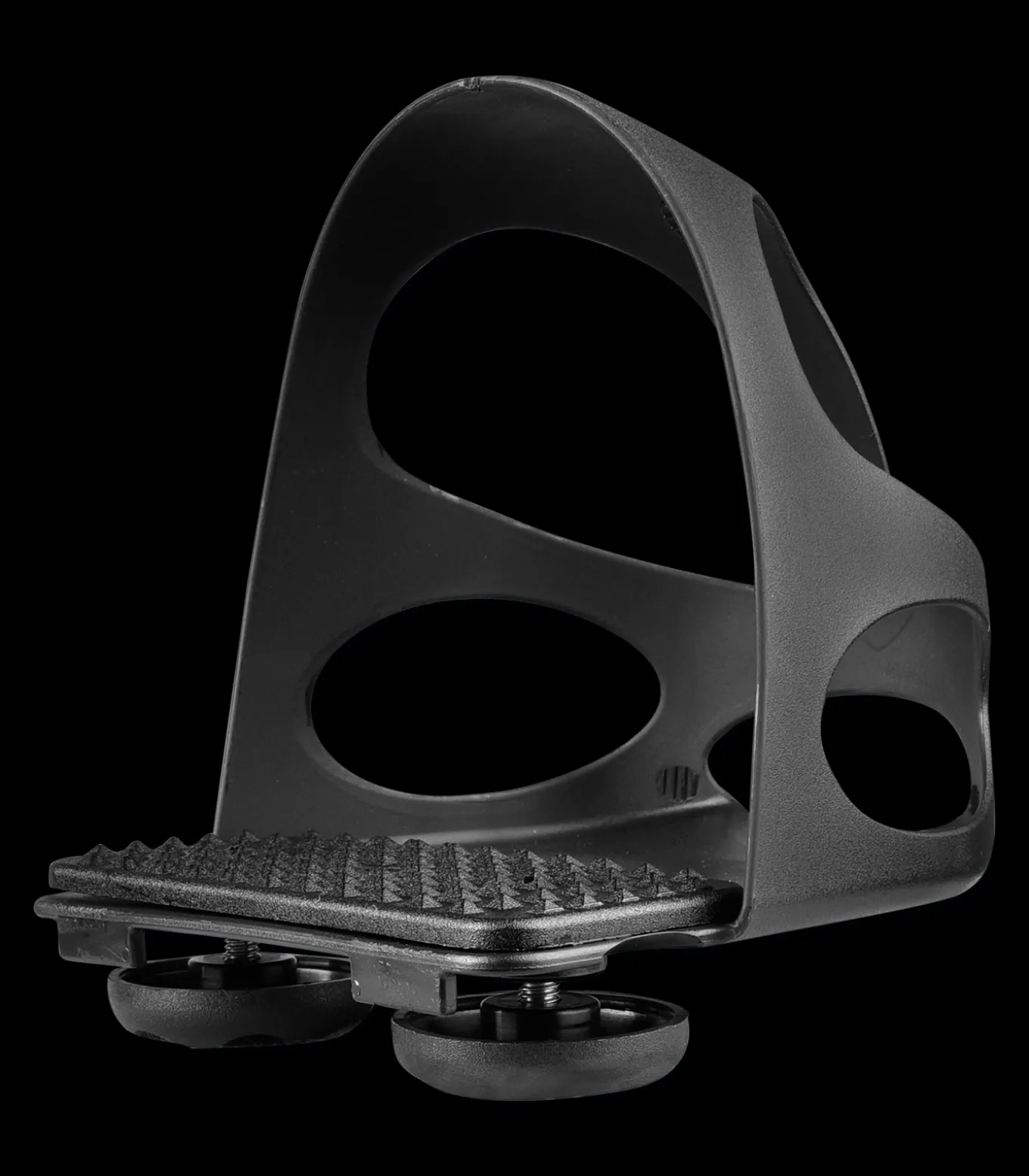 Sicherheitseinsatz der das Durchrutschen des Fusses verhindert. Leichtes anbringen durch Festschrauben in jeden gängigen Steigbügel. Paar.