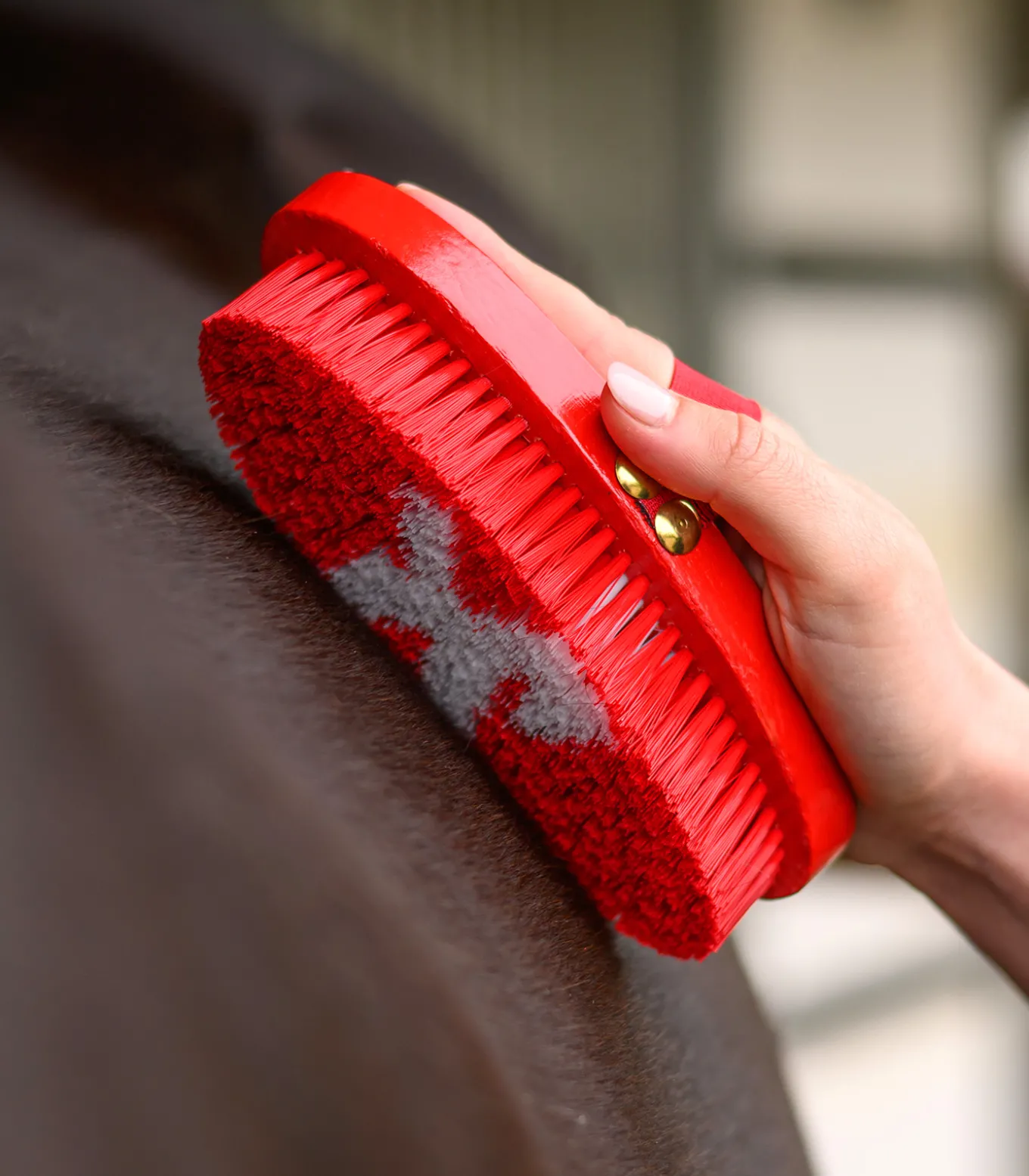 Weiche Synthetikborsten mit Pferdchen-Motiv. Elastische Handschlaufe.