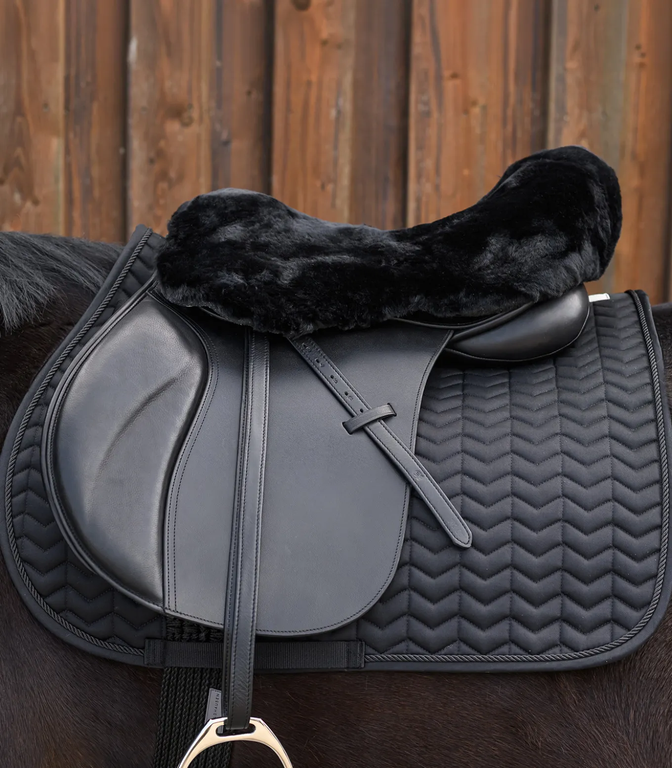 Alle Lammfellprodukte bestehen aus hochwertiger Merinoschafwolle und zeichnen sich durch eine sorgfältige Verarbeitung aus. Echtes Lammfell verfügt über hervorragende Eigenschaften, die beim Reiten besonders zum Tragen kommen. Die natürliche Standfestigkeit des Lammfells sogt beispielsweise für eine optimale Druckverteilung und Stoßabsorbation, so dass punktuelle Druck- und Scheuerstellen vermieden werden. Außerdem begünstigt die Beschaffenheit der Schafwolle die Luftzirkulation und sorgt so auf natürliche Weise für einen hervorragenden Temperaturausgleich. Aufgrund der guten Saugfähigkeit wird der Pferdeschweiß sofort aufgenommen.