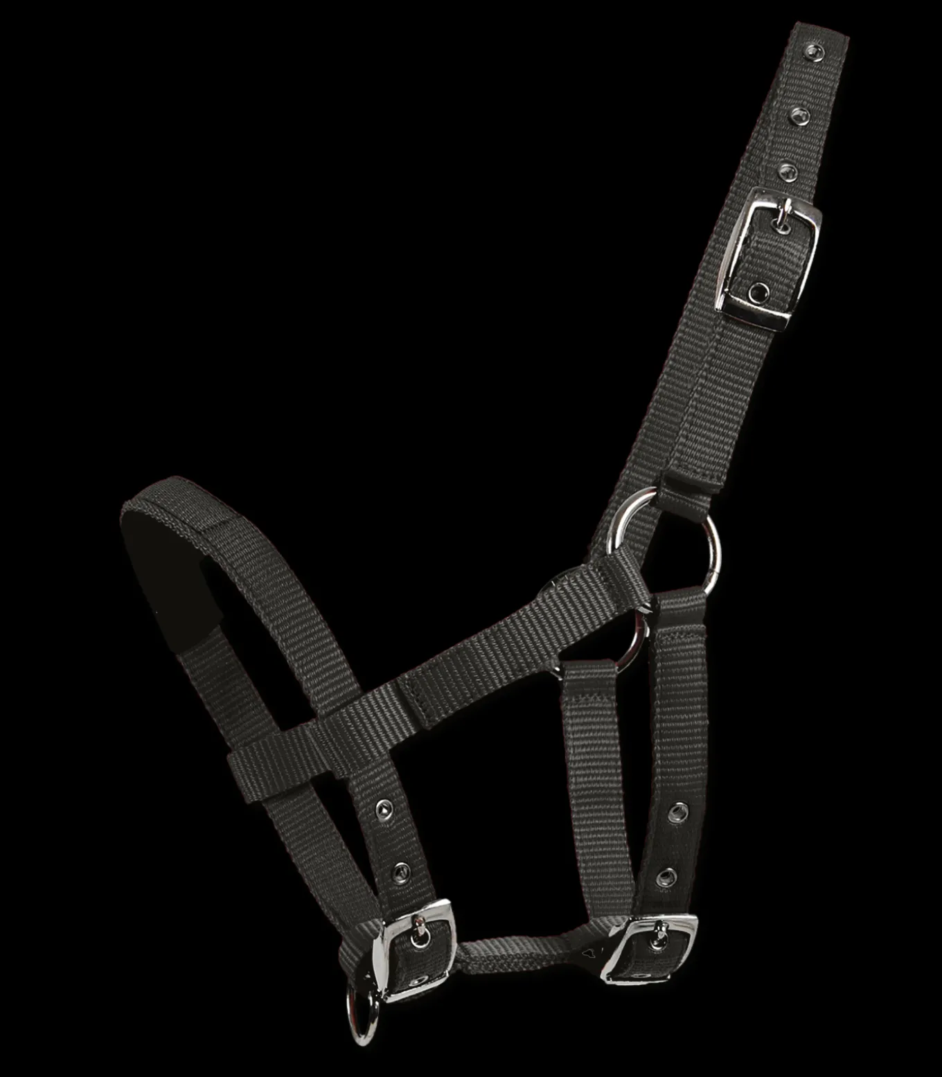 Weich gepolstertes Halfter mit verschiedenen Verstellmöglichkeiten.