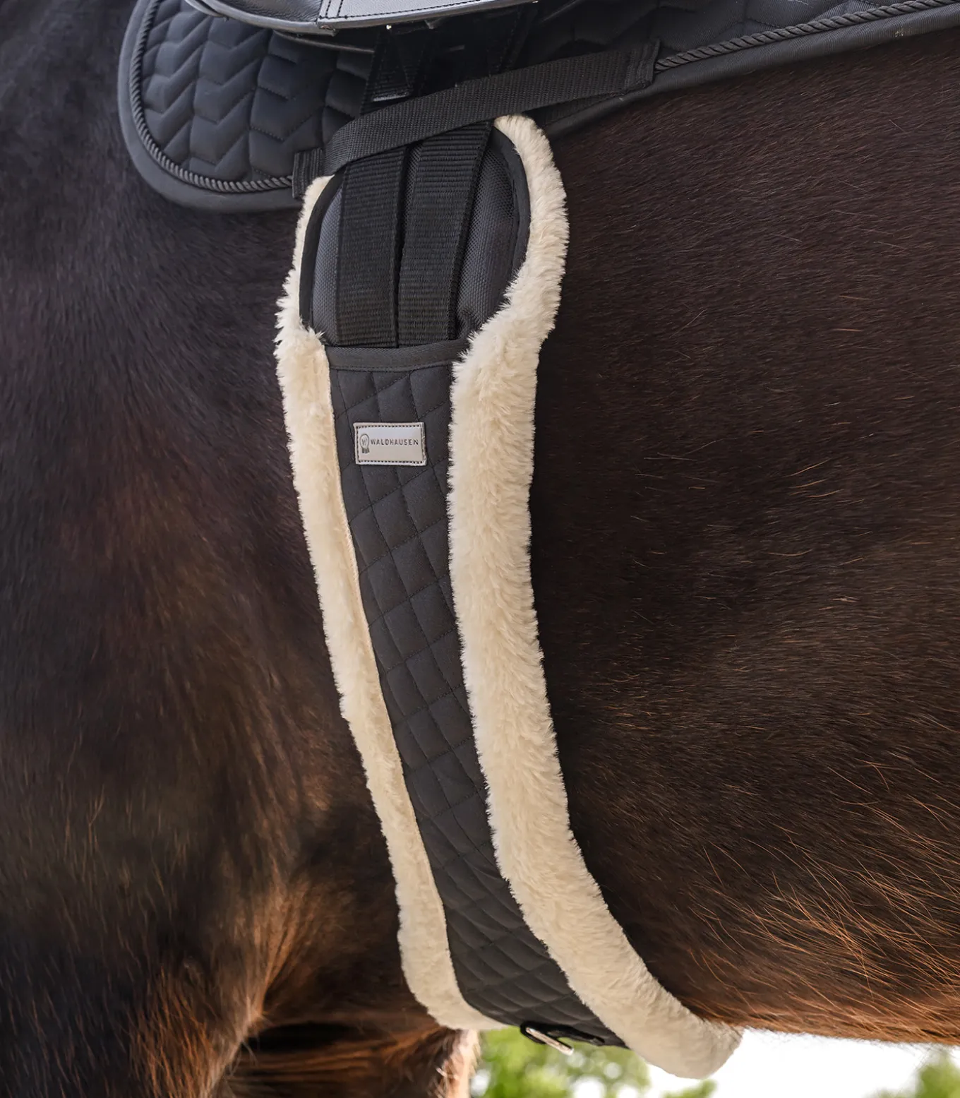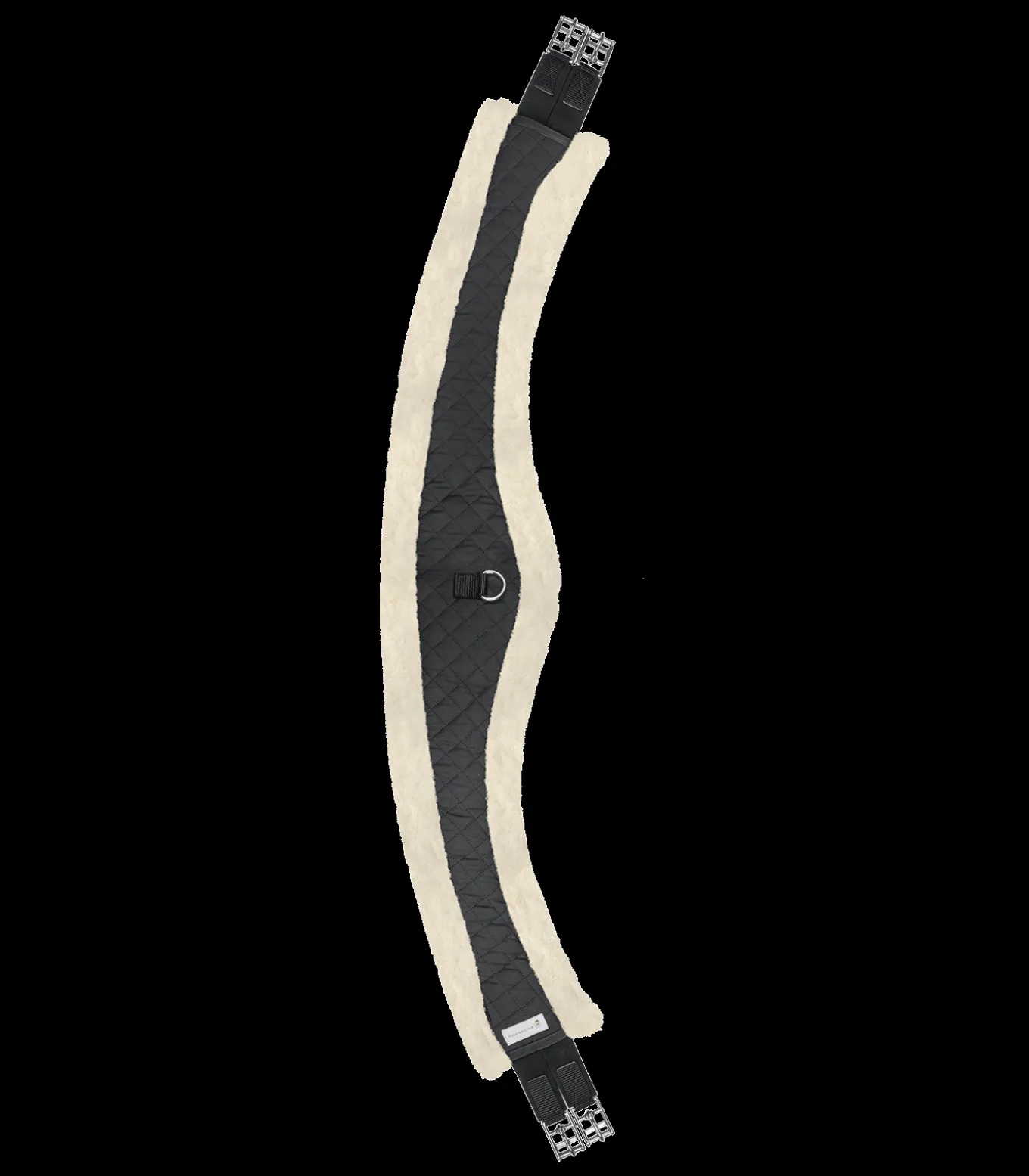 Langgurt, mit weichem synthetischen Fell unterlegt. Durch seine Form ist der Langgurt besonders für bauchige Pferde geeignet und beugt ein nach vorne rutschen des Sattels vor. Mit D-Ring und Rollschnallen aus Edelstahl. Ohne Elastik.