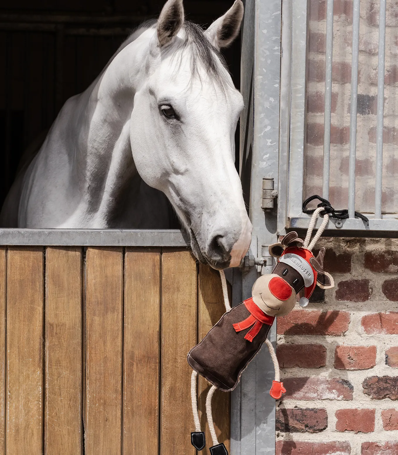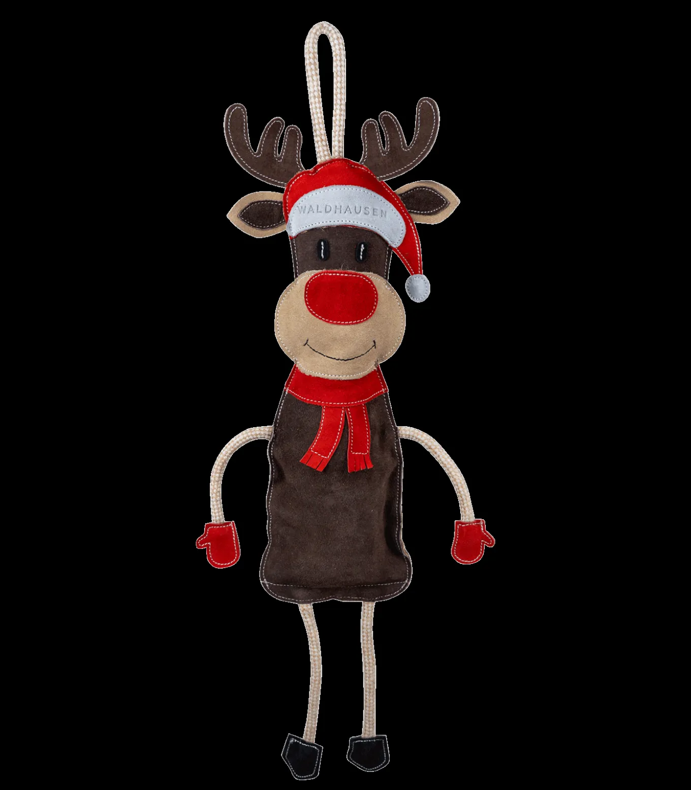 Das Pferdespielzeug Rentier Rudi von Waldhausen begeistert durch sein hübsches Design. Rentier Rudi hilft gegen Langeweile. Beim Drücken auf den Bauch ertönt ein knackendes Plastikgeräusch. Das Pferdespielzeug lässt sich leicht greifen und schwingen. Die Kunststoffflasche lässt sich durch einen Klettverschluss leicht herausnehmen oder austauschen. Mit dem Seil am Kopf kann das Spielzeug aufgehangen werden.