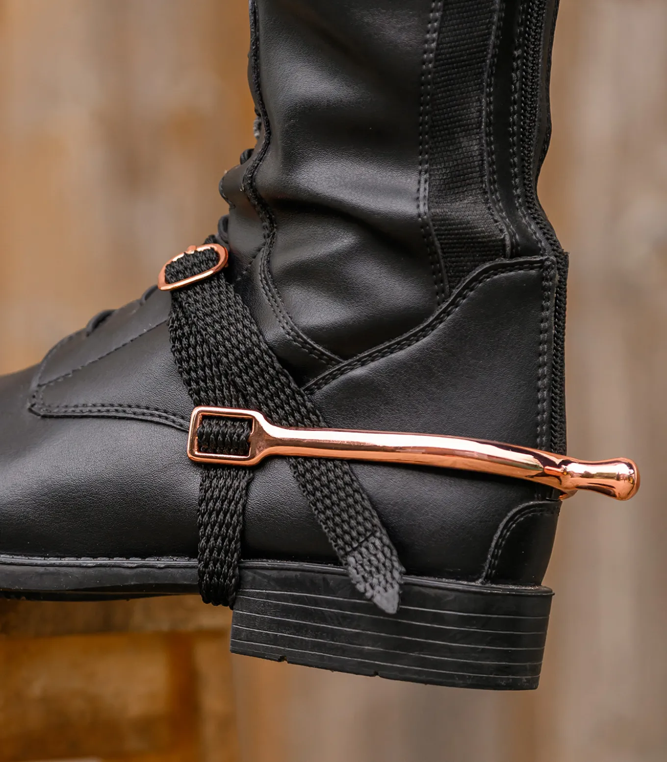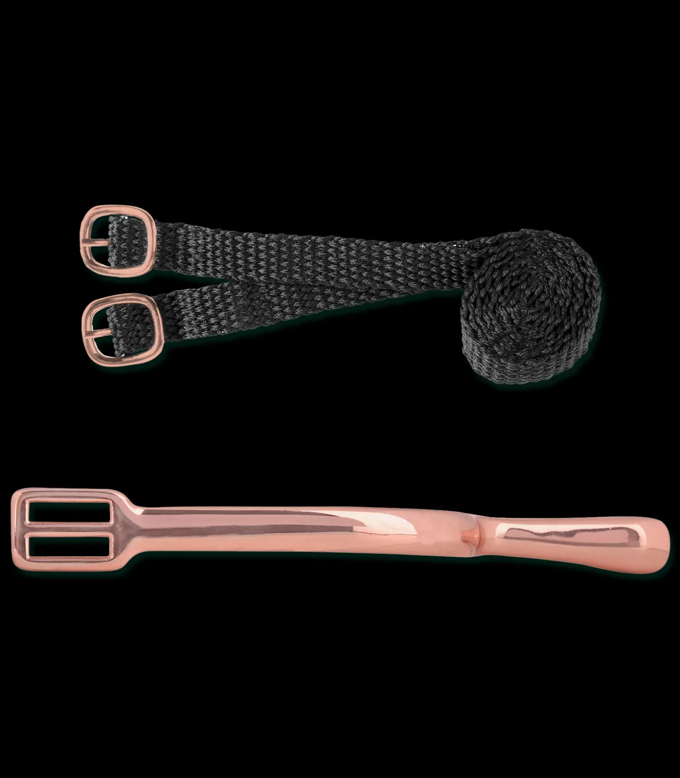 Hochwertige Edelstahlsporen in roségold Legierung. Perlonriemen mit Edelstahlschnalle in roségold. Paar.