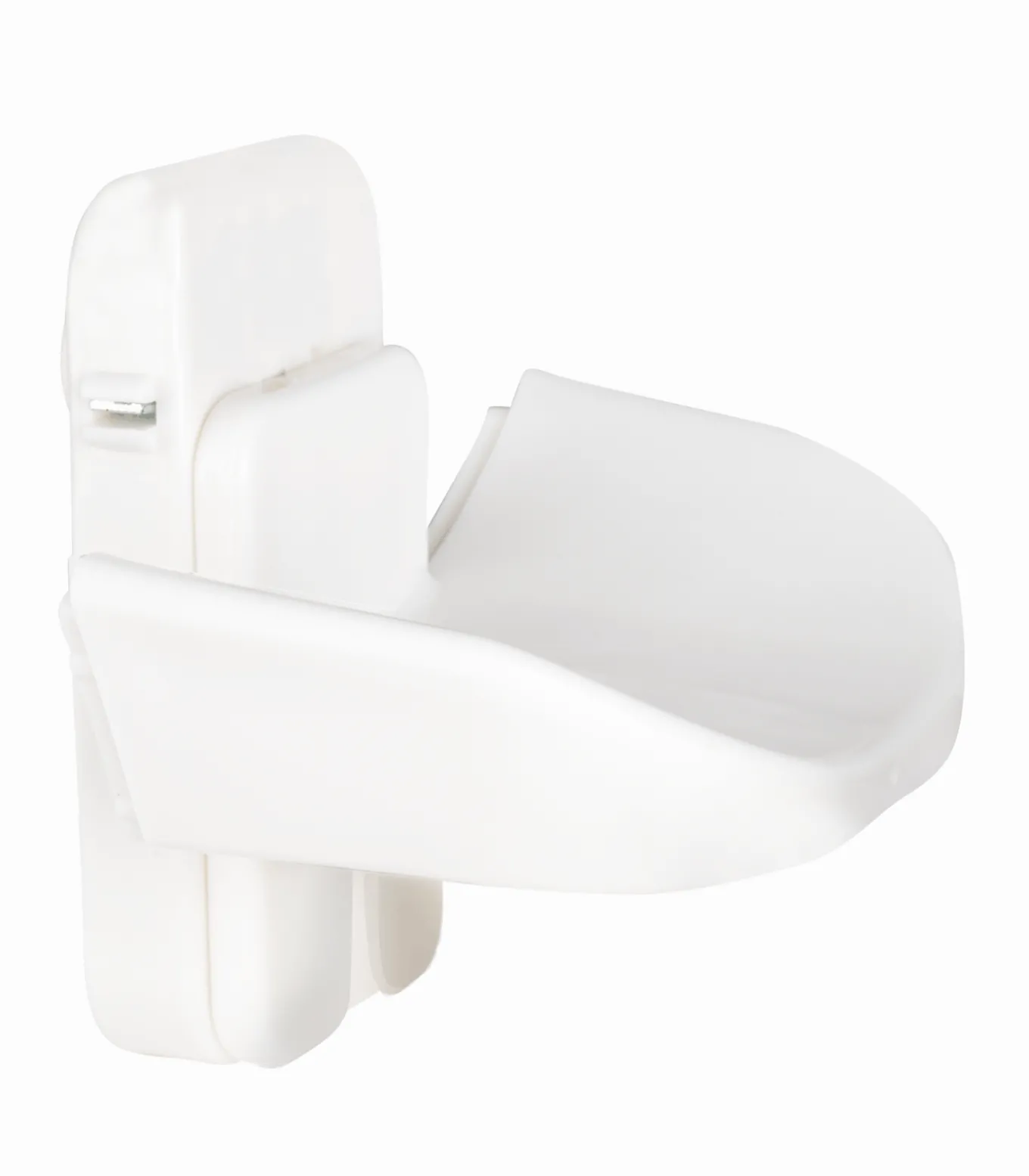 Stangenauflage mit Adapter aus schlagfestem Kunststoff, für Schlüssellochschiene 24 mm, 20er Auflagentiefe, flach, wechselseitig einsetzbar. Stück