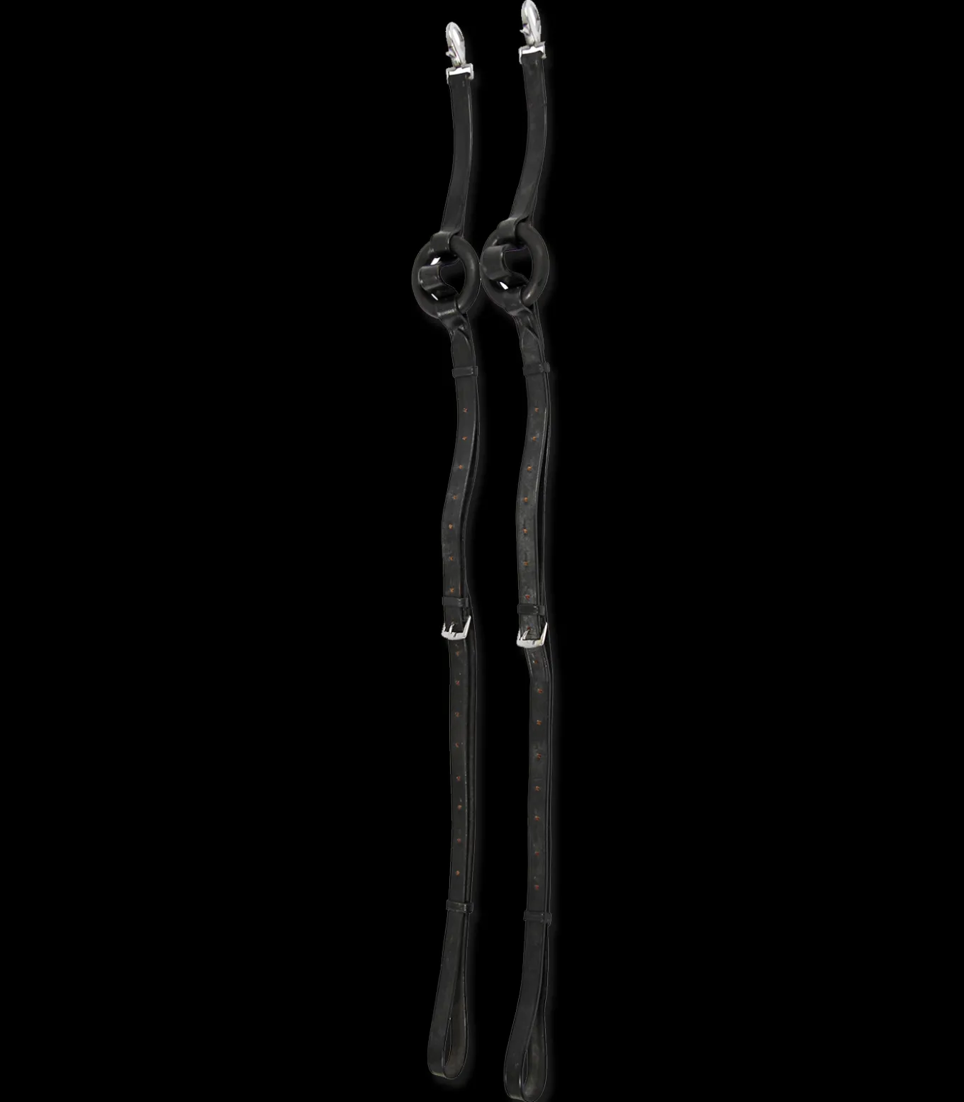 Der ideale Ausbinder für Training und Ausbildung. Robustes Qualitätsleder. Mehrfach verstellbar, mit Gummiringen. Paar.