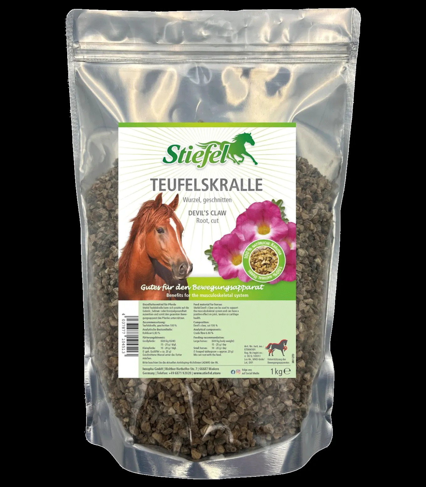 Stiefel Teufelskralle kann sich positiv auf die Gelenk-, Sehnen- oder Knorpelgesundheit auswirken und somit den gesamten Bewegungsapparat des Pferdes unterstützen.
