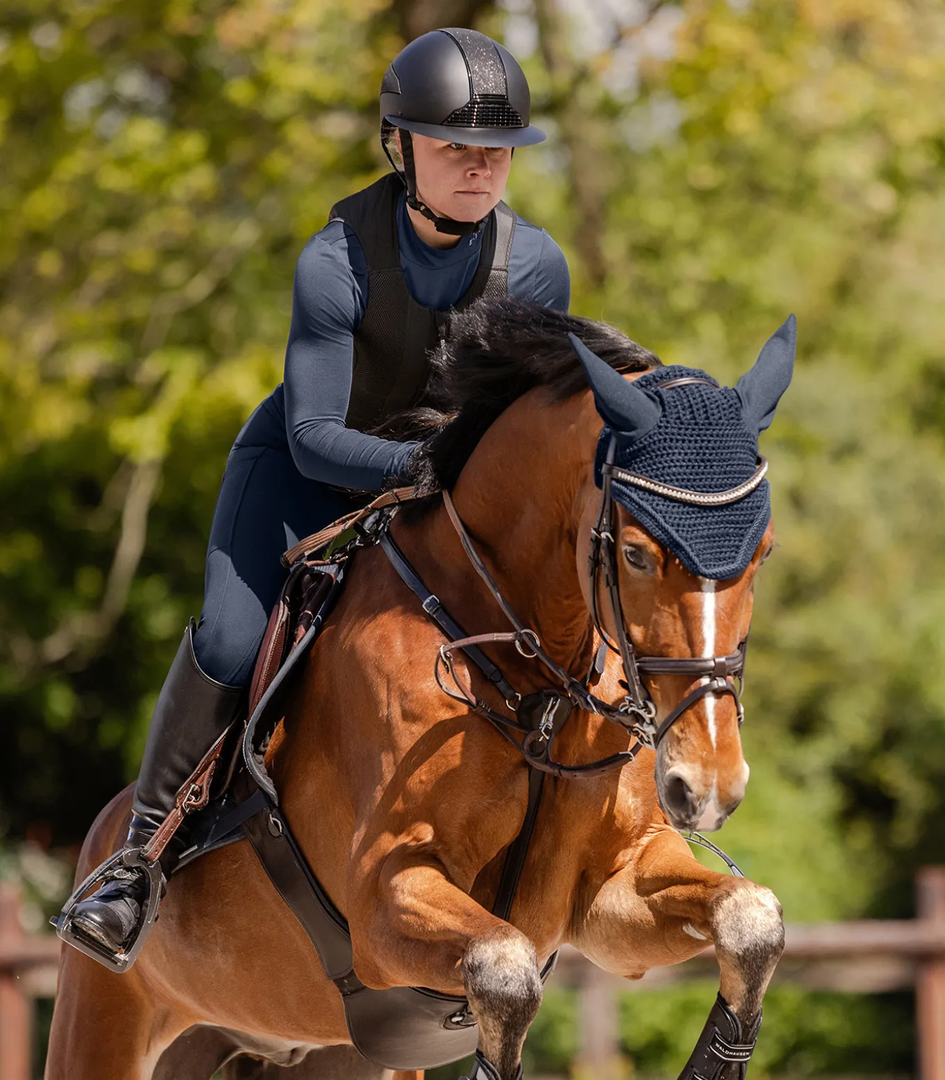 Die verbesserte ergonomische Schnittführung und seitliche Klettverschlüsse garantieren eine optimale Anpassung an den Körper. Das elastische, leichte und atmungsaktive Gewebe sorgt für maximalen Tragekomfort, damit Sie sich voll und ganz auf das Reiten konzentrieren können.