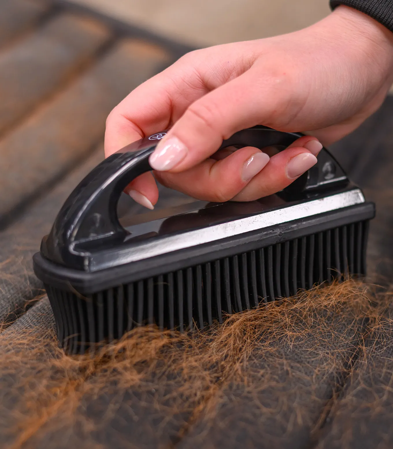 Tierhaarentferner mit Gummiborsten und praktischem Griff. Zur Entfernung von Haaren auf Schabracke, Decke, Kleidung und Co.