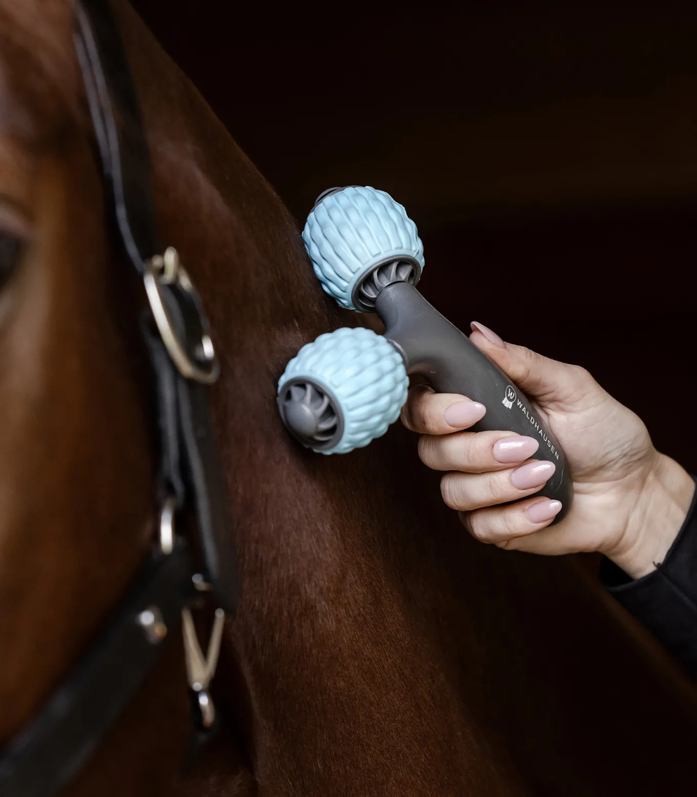 Für die sanfte Massage an empfindlichen Bereichen. Der Comfort Creator ist geeignet für empfindliche Körperregionen und zur allgemeinen Entspannung des Pferdes. Vor allem für Einsteiger ist dieses Tool leicht zu bedienen und bestens geeignet. Die sanfte Massagewirkung kann das Wohlbefinden fördern ohne allzu tief in die Muskulatur einzudringen. Comfort Creator: Mit seiner besonders sanften Massagewirkung ist dieser Roller ideal für empfindliche Stellen wie den Hals, die Schulterpartie, das Genick oder den Brustbereich. Vor allem vor dem Training können hier Muskeln gelockert und aktiviert werden. An den Beinen kann er zudem vorsichtig eingesetzt werden, um die Lymphzirkulation anzuregen und Verspannungen sanft zu lösen, besonders geeignet für sensible Pferde.