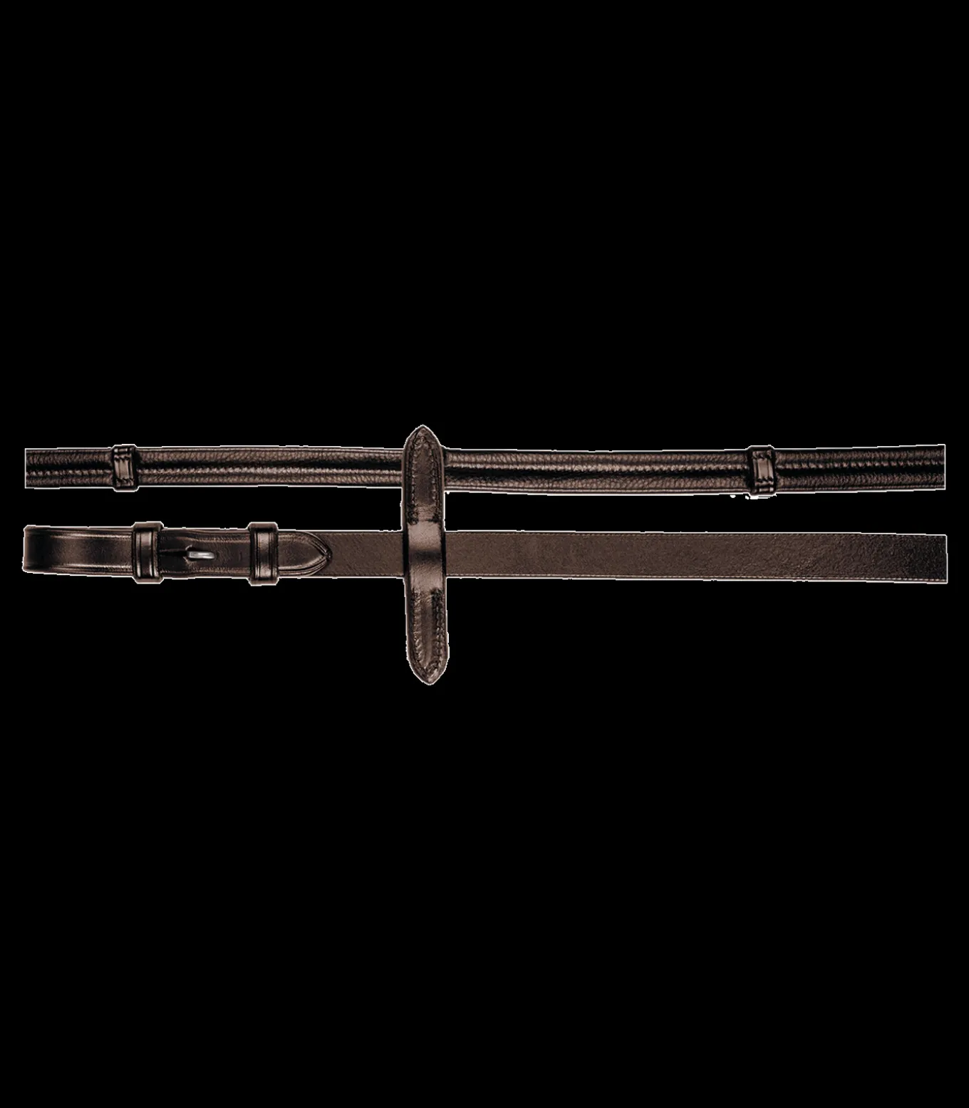 Zügel aus weichem Leder, mit Lederstegen, Martingalschiebern und Haken.