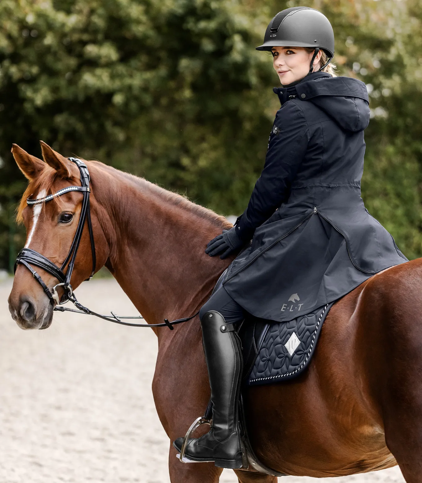 – Reitschlitze innen mit reflektierendem E·L·T Logo-Print links und E·L·T Equestrian Performance Schriftzug rechts