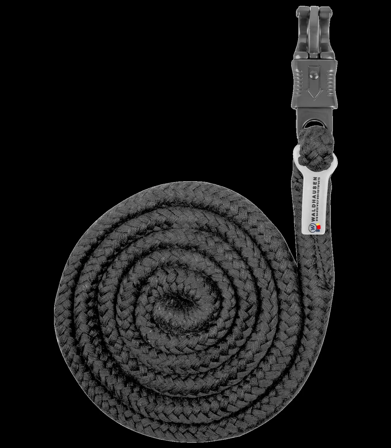 Hochwertiger, komplett geflochtener Anbindestrick mit dunklen Beschlägen