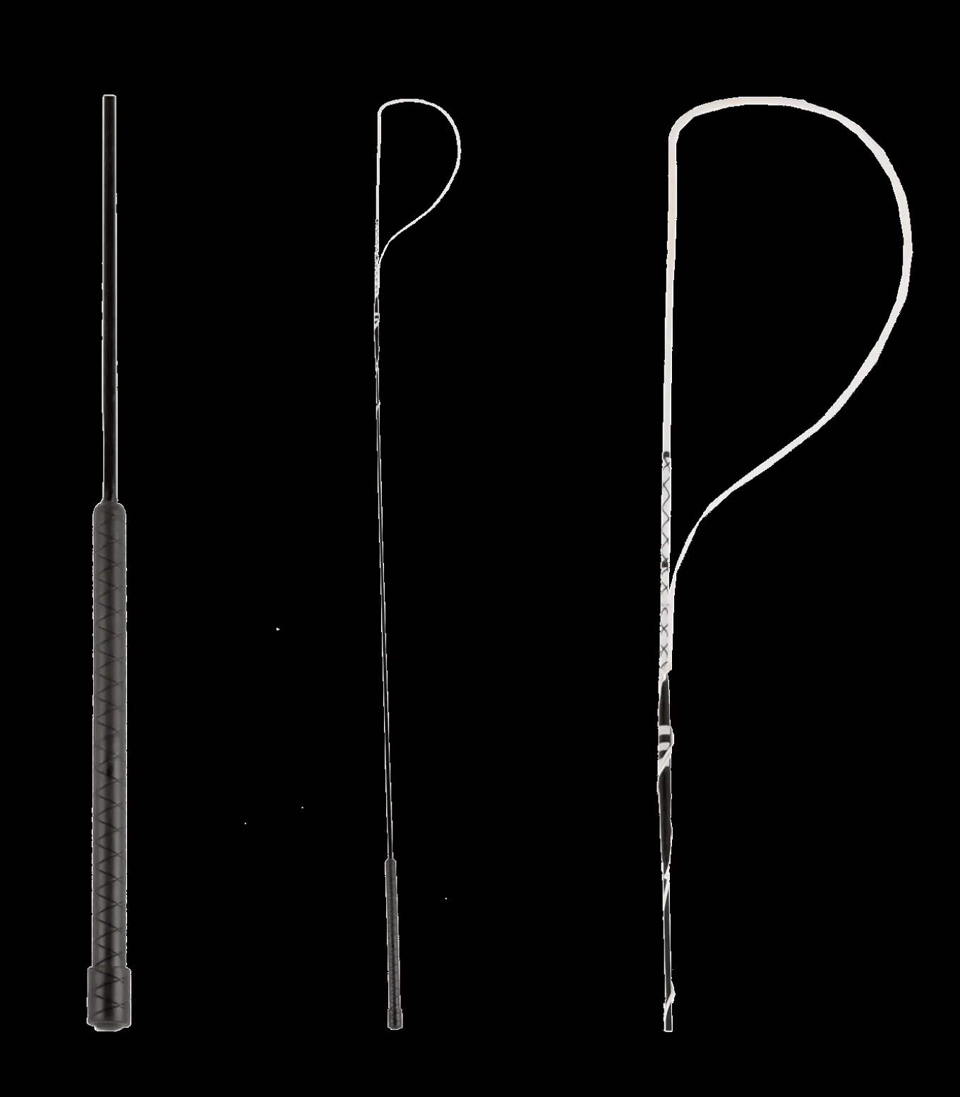 Glatt lackierte Bogenpeitsche aus Fiberglas. Kunststoffgriff und besponnener Bogen.