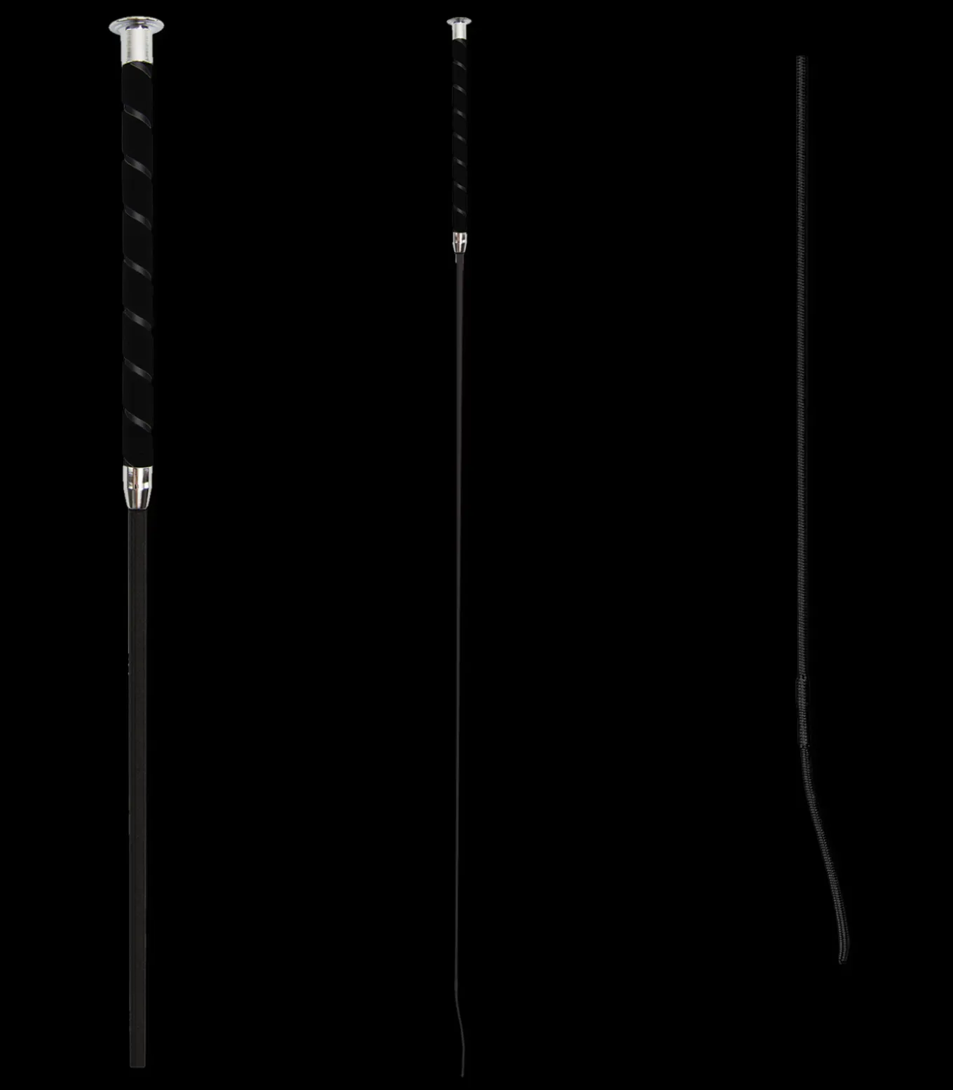 Dressurgerte mit rutschfestem, schwarz-kontrastierendem Verlours-Samt Griff.