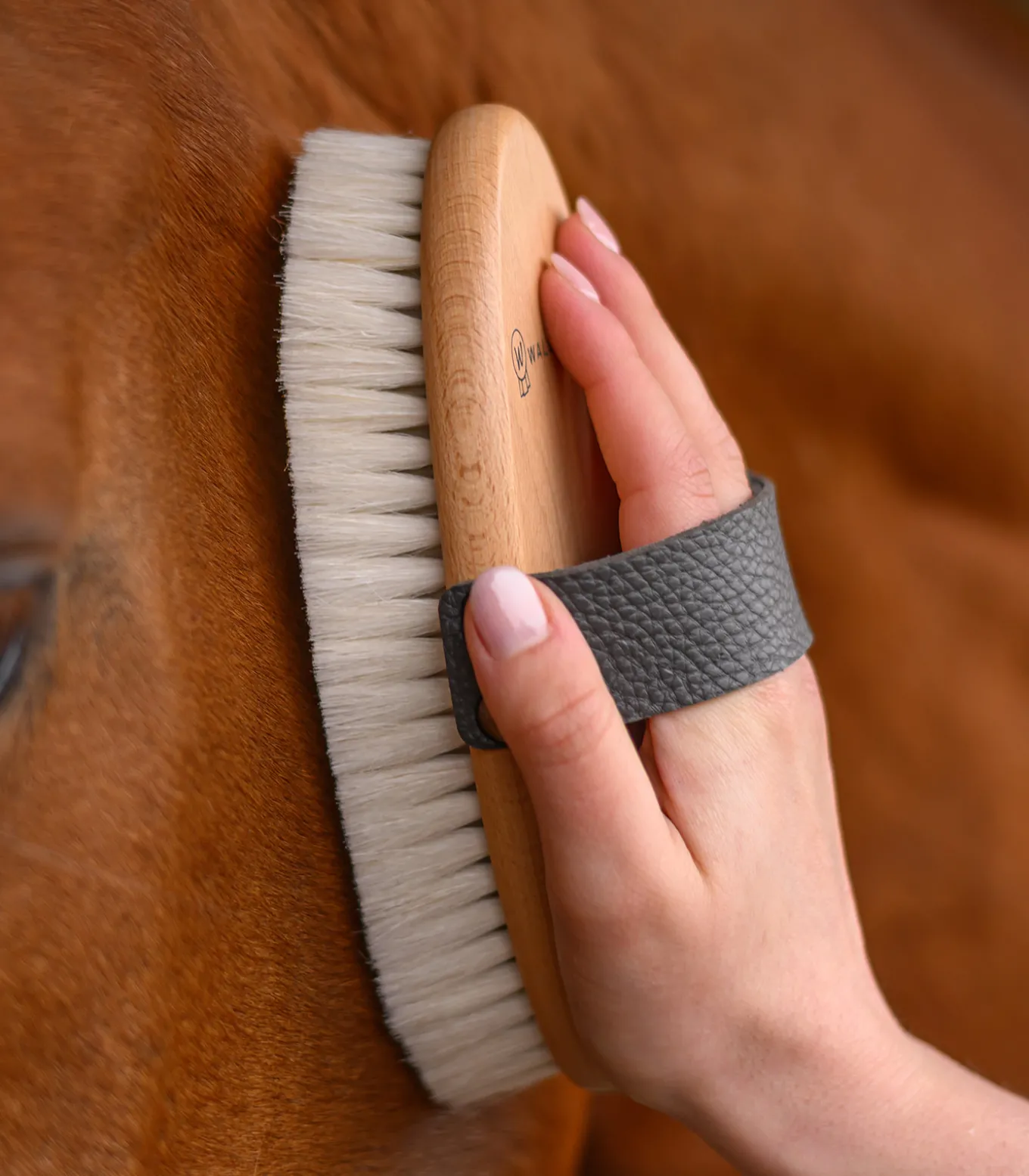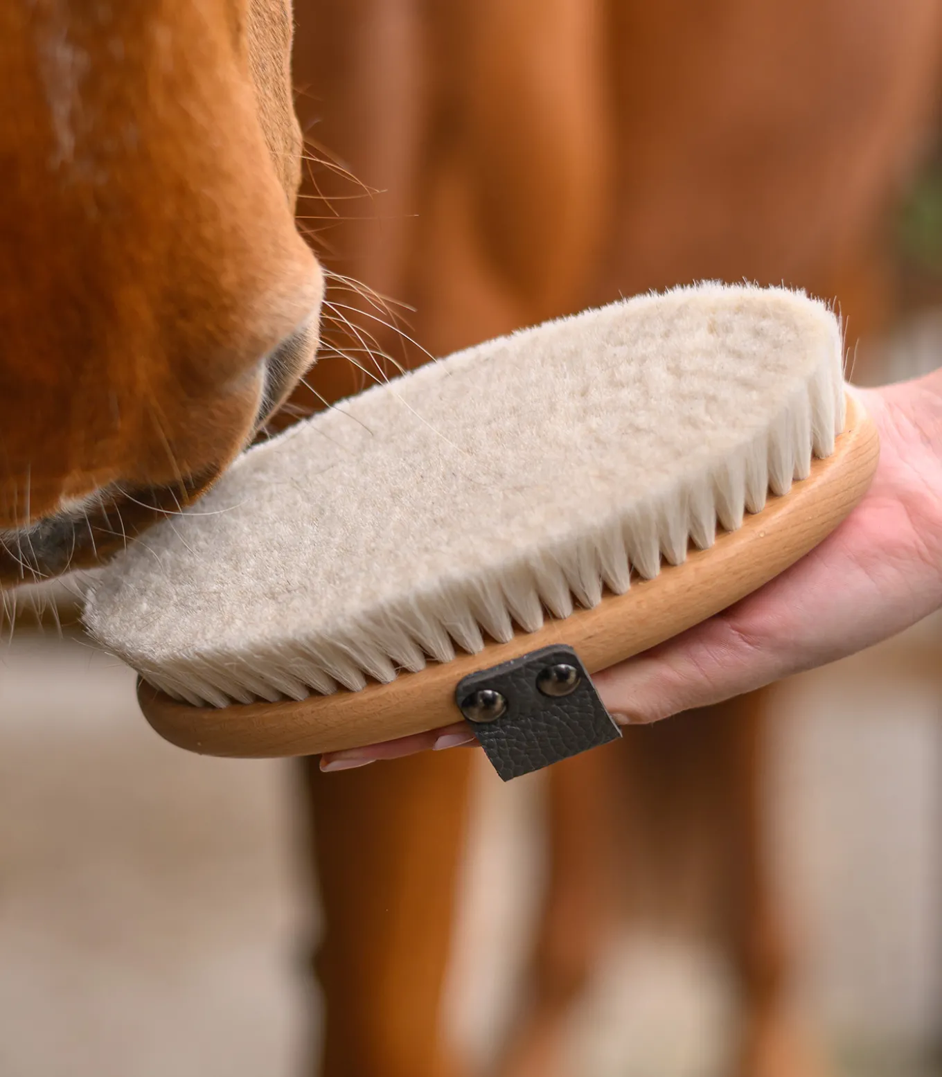 Die hochwertige Tierhaarkardätsche verleiht dem Fell einen schönen Glanz und eignet sich perfekt für das Finish. Das weiche und glatte Bürstenhaar hinterlässt kein Staubkorn auf dem Pferdefell und sorgt zudem für besondere Schmuseeinheiten.