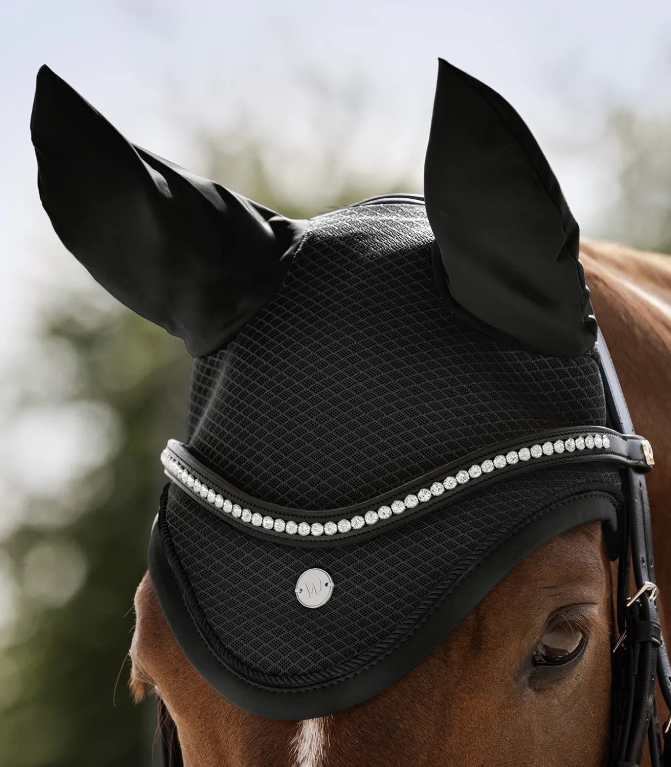 Hochwertige Fliegenohren aus atmungsaktivem Mesh Material. Ein silbernes Metall-Logo sowie eine Zierkordel sorgen für einen eleganten Auftritt.