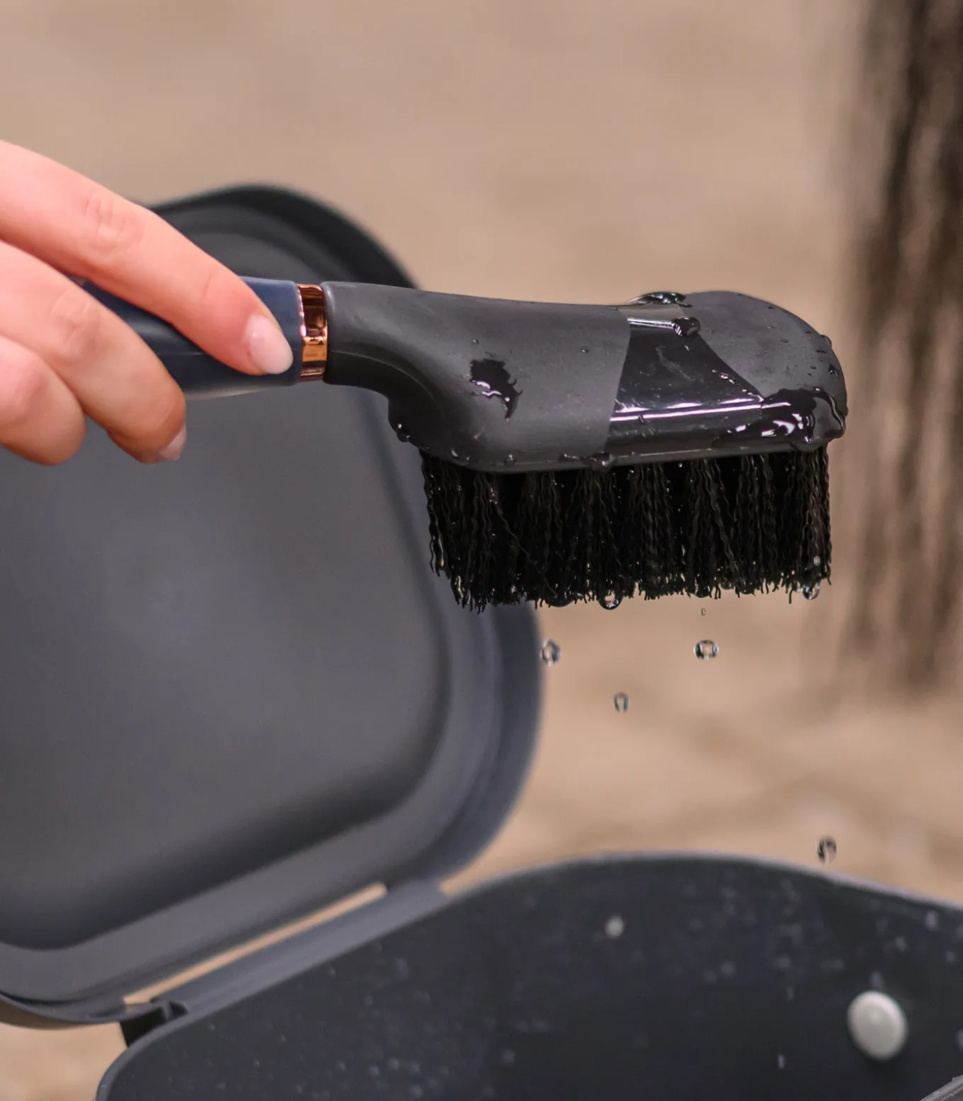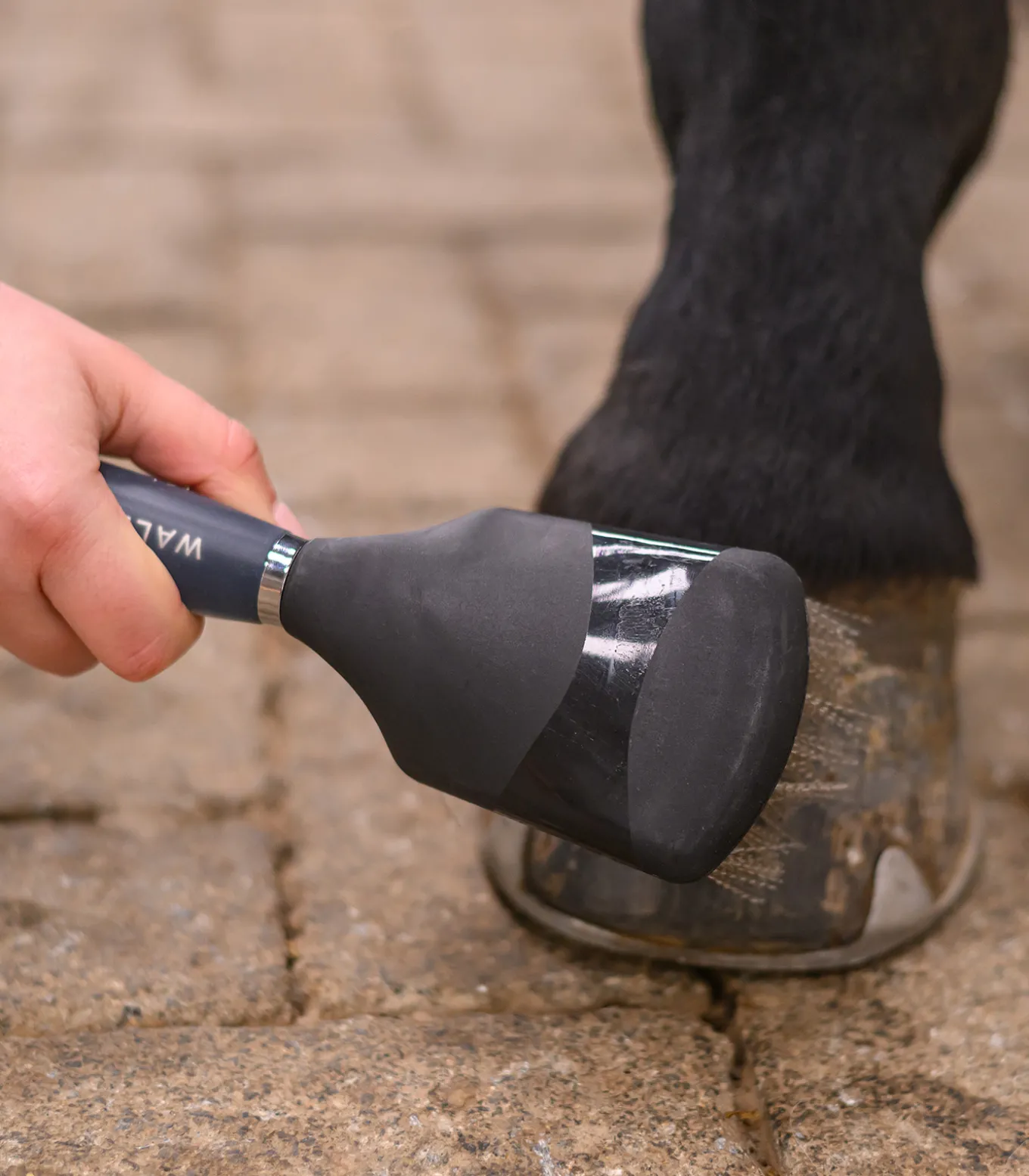 Formschöne Hufbürste mit kräftigen Synthetikborsten. Der Gelgriff passt sich ergonomisch an ihre Handfläche an.