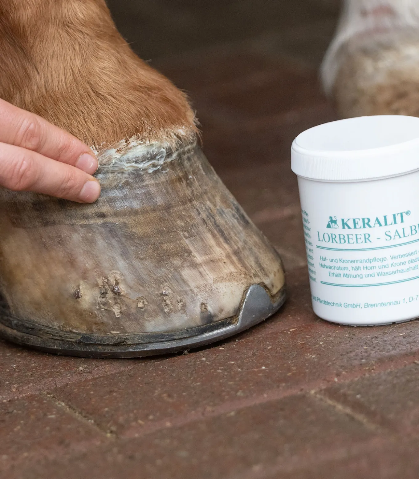 Die Salbe kann auf den feuchten oder trockenen Huf aufgetragen werden und wird am Kronrand einmassiert. Die Anwendung sollte am Kronbereich 2-3 mal wöchentlich erfolgen.
