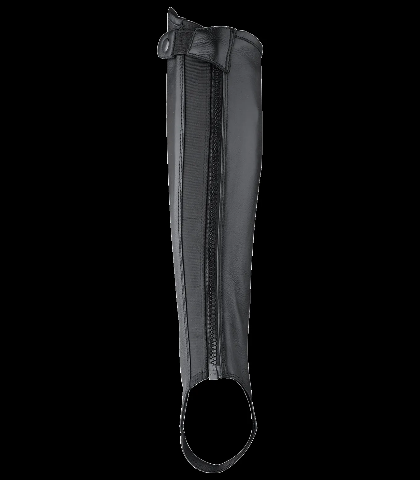– Lederriegel mit Elastikband und Druckknopf zur Sicherung des Reißverschlusses