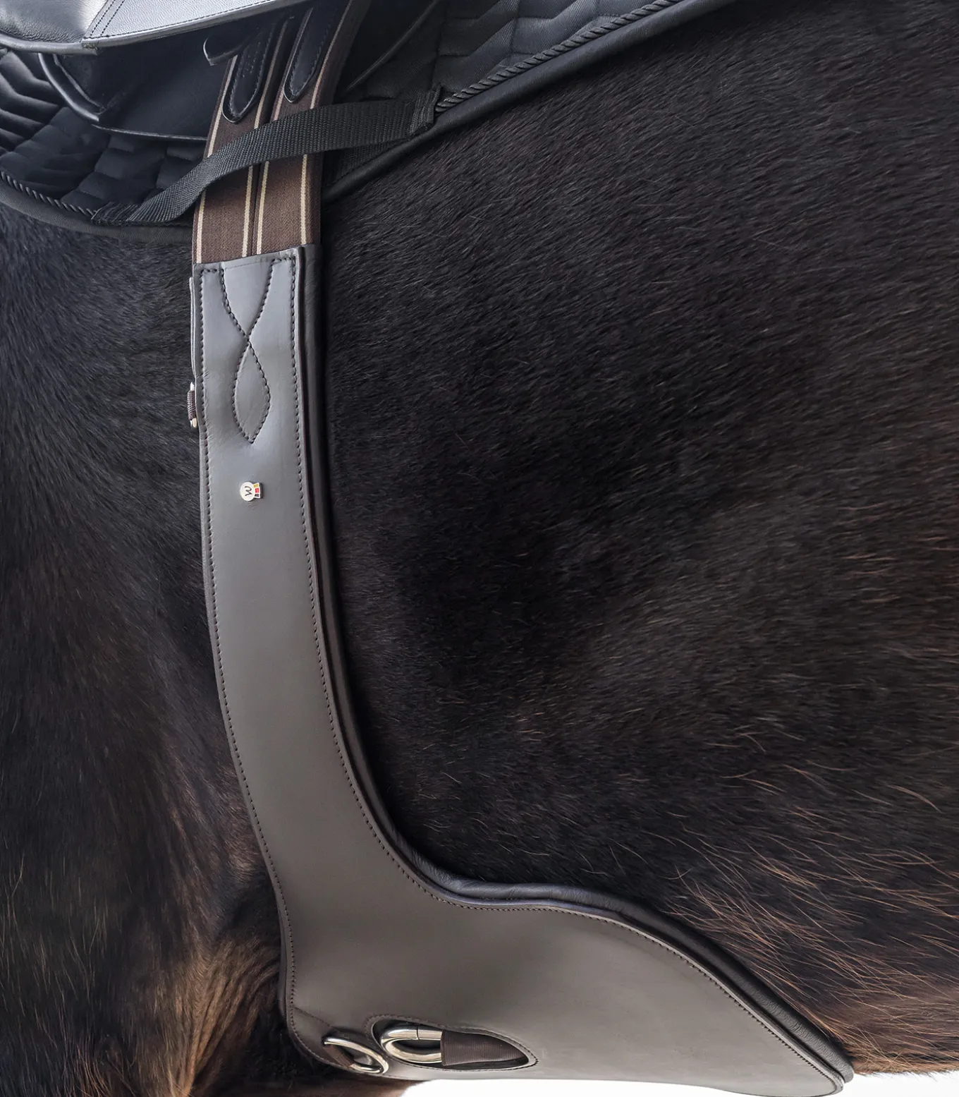 Effektiver Schutz vor Hufeisen. Hochwertige Lederqualität, weich abgepolstert. Beidseitig elastische Gurtenden und Edelstahl- Rollschnallen.