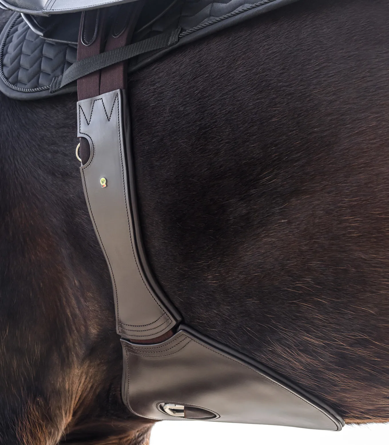 Anatomisch geformter Bauchlatz, welcher effektiv vor Hufeisen & Stollen schützt. Die beiden zusätzlichen Elastikeinsätze sorgen für extra Bewegungsfreiheit. Sie unterstützen die Brustkorbbewegungen beim Ein- und Ausatmen und wirken Gurtzwang entgegen. Beidseitig elastische Gurtenden und Edelstahl- Rollschnallen.
