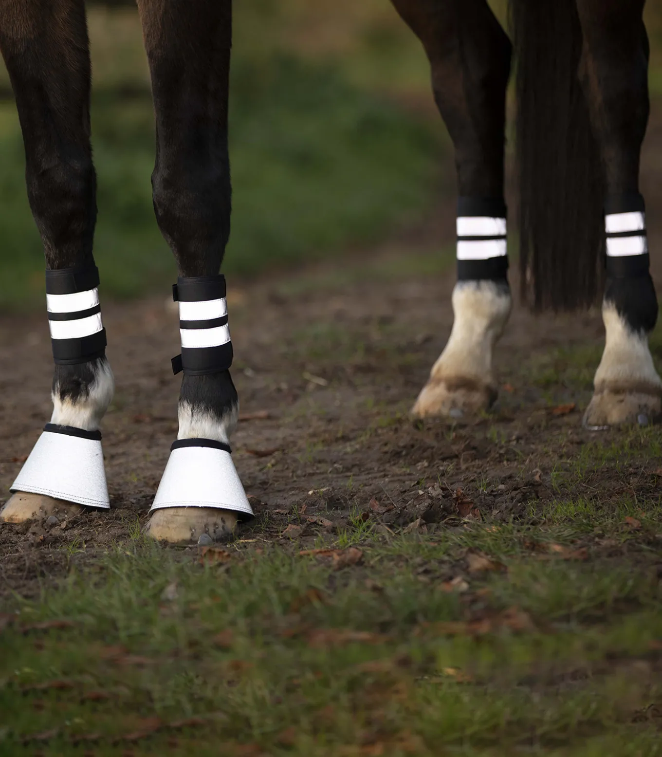 Mehr Sichtbarkeit bei Dunkelheit an allen vier Pferdebeinen. Je zwei reflektierende Streifen sorgen für ein besseres „Gesehen werden“. Die Reflex-Bandagen lassen sich durch zwei Klettbänder problemlos anlegen.