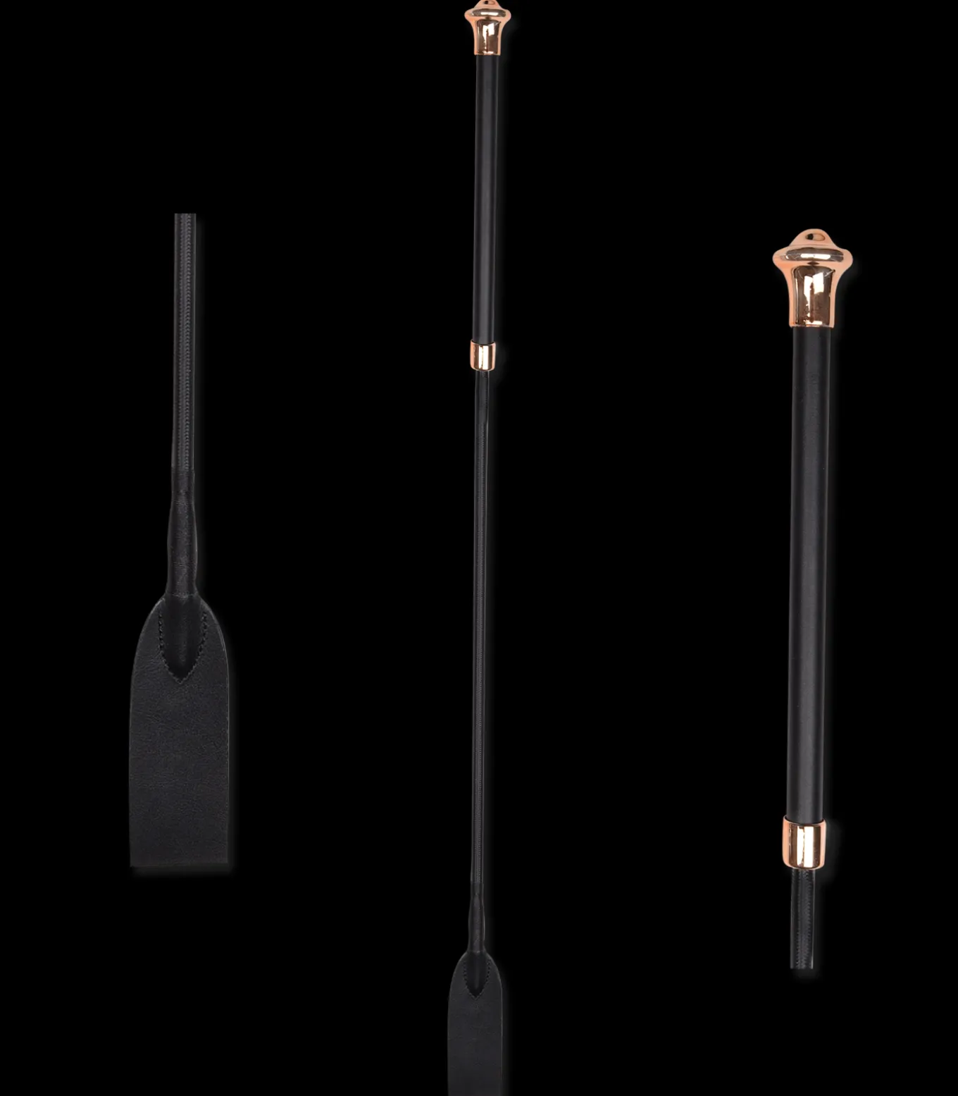 Hochwertige Springgerte mit Griff und Klatsche aus Glattleder und edlen Abschlüssen. Für höchste Ansprüche.