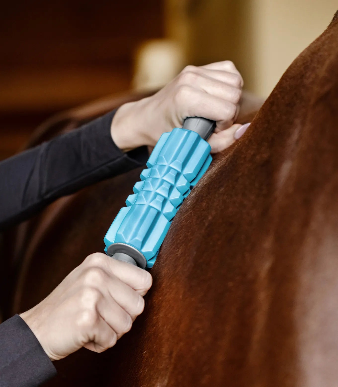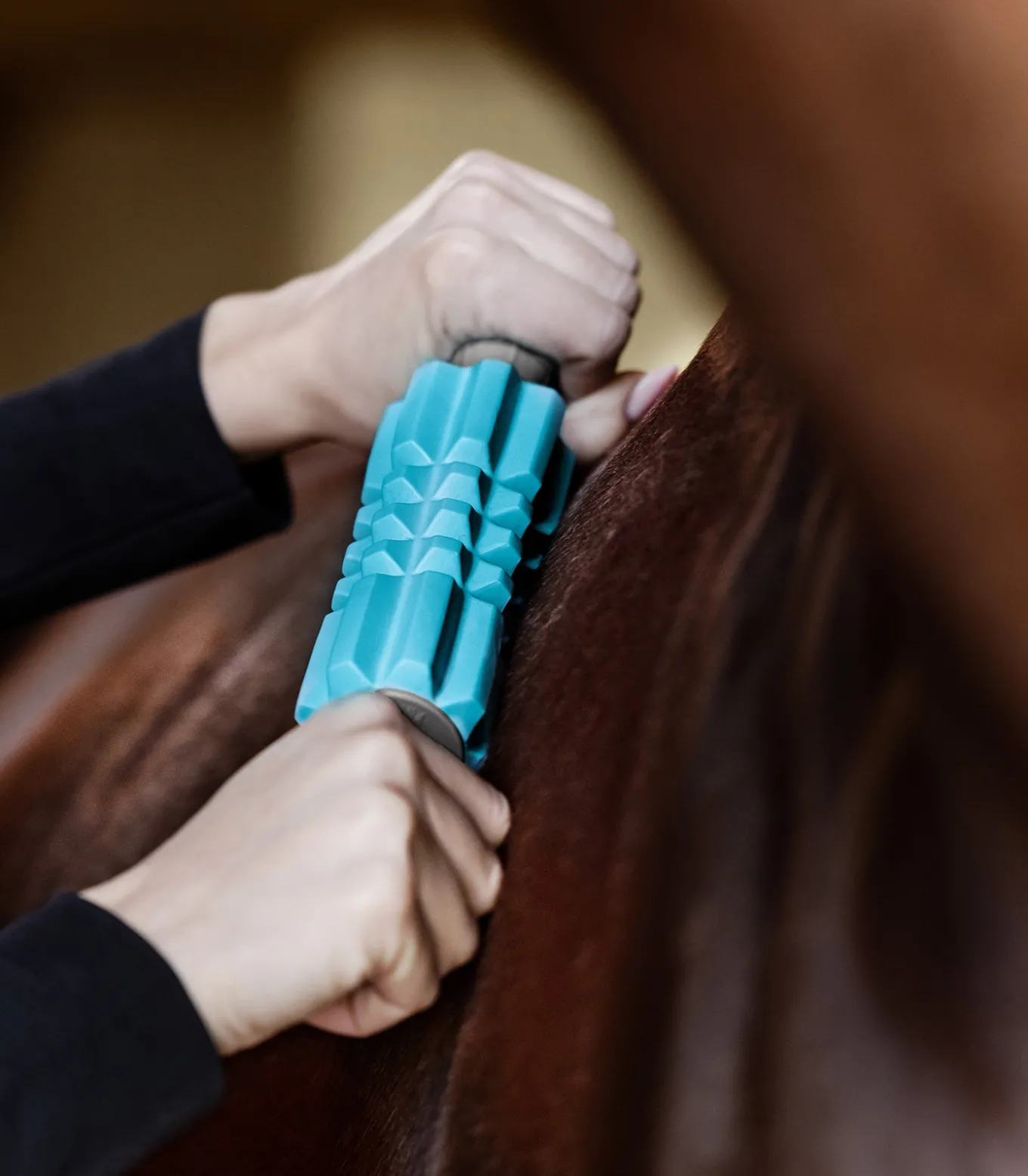Für eine tiefenwirksame Faszien Massage. Ideal zur Lösung verklebter Faszien und tiefer Muskelverspannungen. Dieser Massageroller erfordert etwas Übung, um die richtige Druckintensität und Technik zu finden. Die Besonderheit liegt hier in der Förderung der Elastizität des Bindegewebes sowie der Unterstützung der Beweglichkeit des Pferdes. Faszien Fit: Dieser Roller eignet sich ideal für die großen Muskelgruppen entlang des Rückens, der Kruppe und des Hinterhandbereichs. Durch seine tiefenwirksame Struktur ist er perfekt, um verklebte Faszien zu lösen und die Beweglichkeit zu verbessern besonders nach intensiven Trainingseinheiten oder bei chronischer Steifheit.