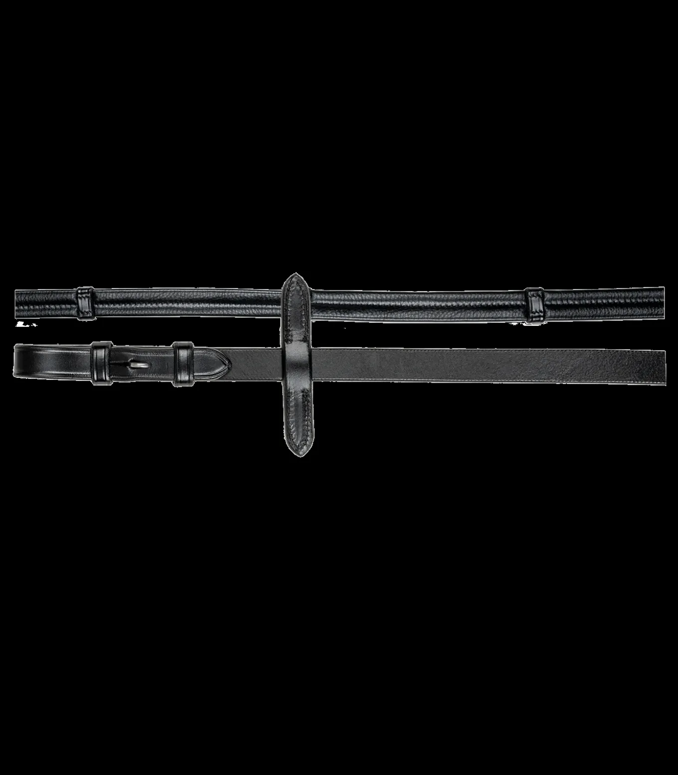 Zügel aus weichem Leder, mit Lederstegen, Martingalschiebern und Haken.